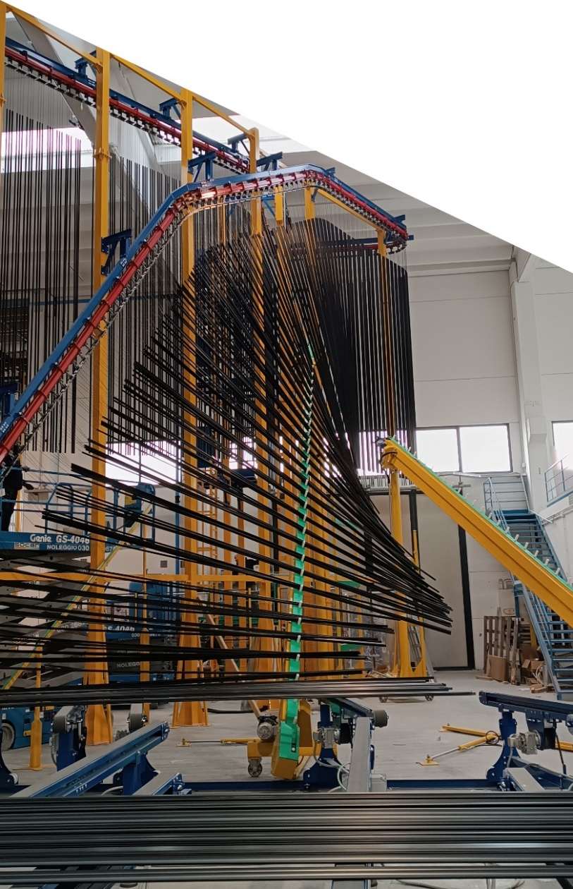 3 I profili sono veicolati all’interno di un forno dedicato alla cottura e polimerizzazione della polvere, producendo uno strato aderente al supporto metallico.